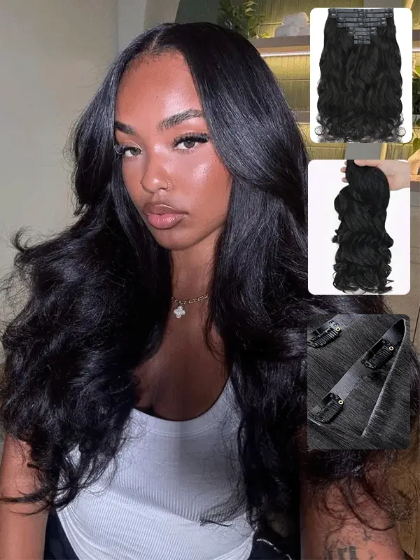 | Feature | 8pcs with 18 clips per set, Raw Hair Clip In Hair Extensions |