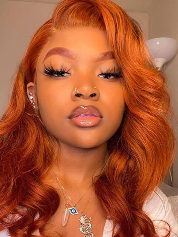 Orange Ginger #350 Colored Body Wave Wig Transparent Lace Wig Human Hair