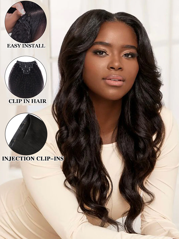 Tiktok Trendy | Kinky Straight Seamless PU Weft Raw Hair Extensions 8pcs With 18 Clips