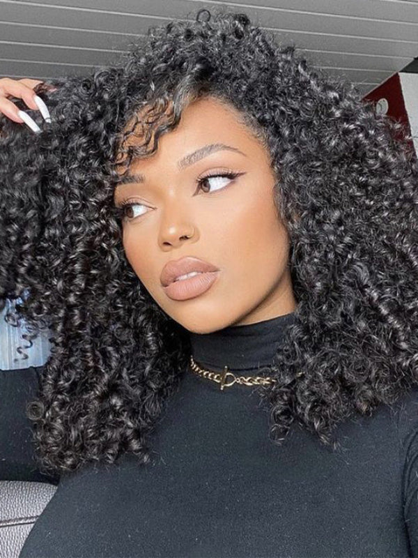 Perruques frontales en dentelle sans colle 4C à bords bouclés et ondulés 13x4/13x6